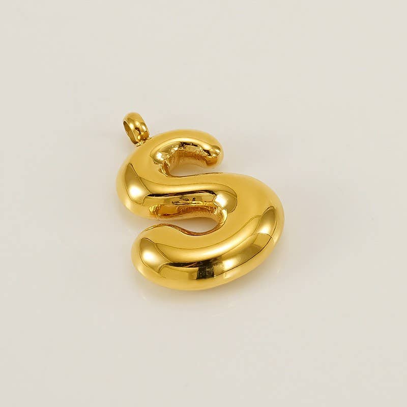 Add a Bubble Initial Charm to your charm necklace or bag charm for a fun personal touch! 18K stainless steel, tarnish free charms in a bright, shiny yellow gold shade.