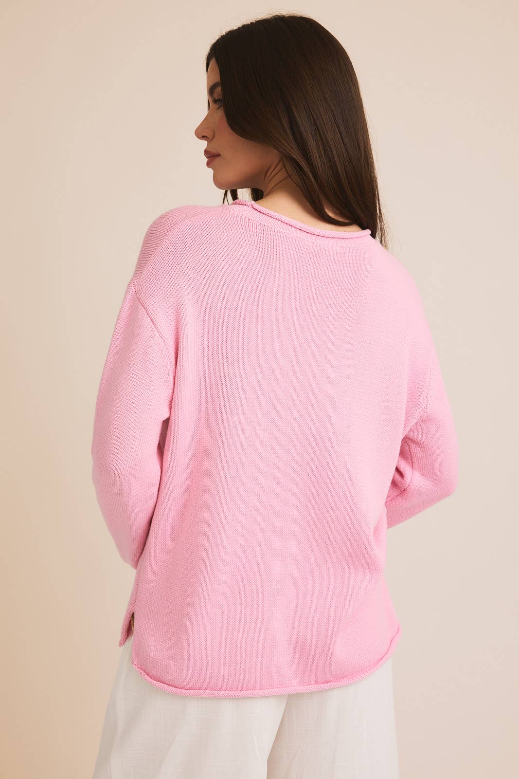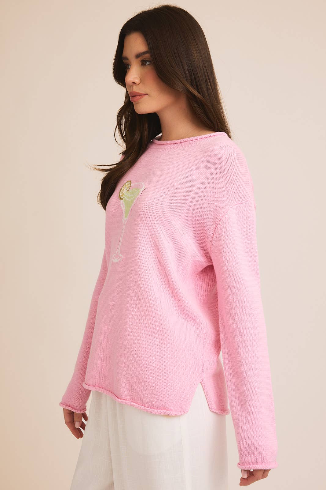 Get ready to sip on some serious style with Margs Sweater! This cute and cozy knit sweater comes in a playful pink color and features an embroidered margarita design, making it the perfect addition to your spring and summer wardrobe. Slay your fashion game while staying comfy and trendy.
