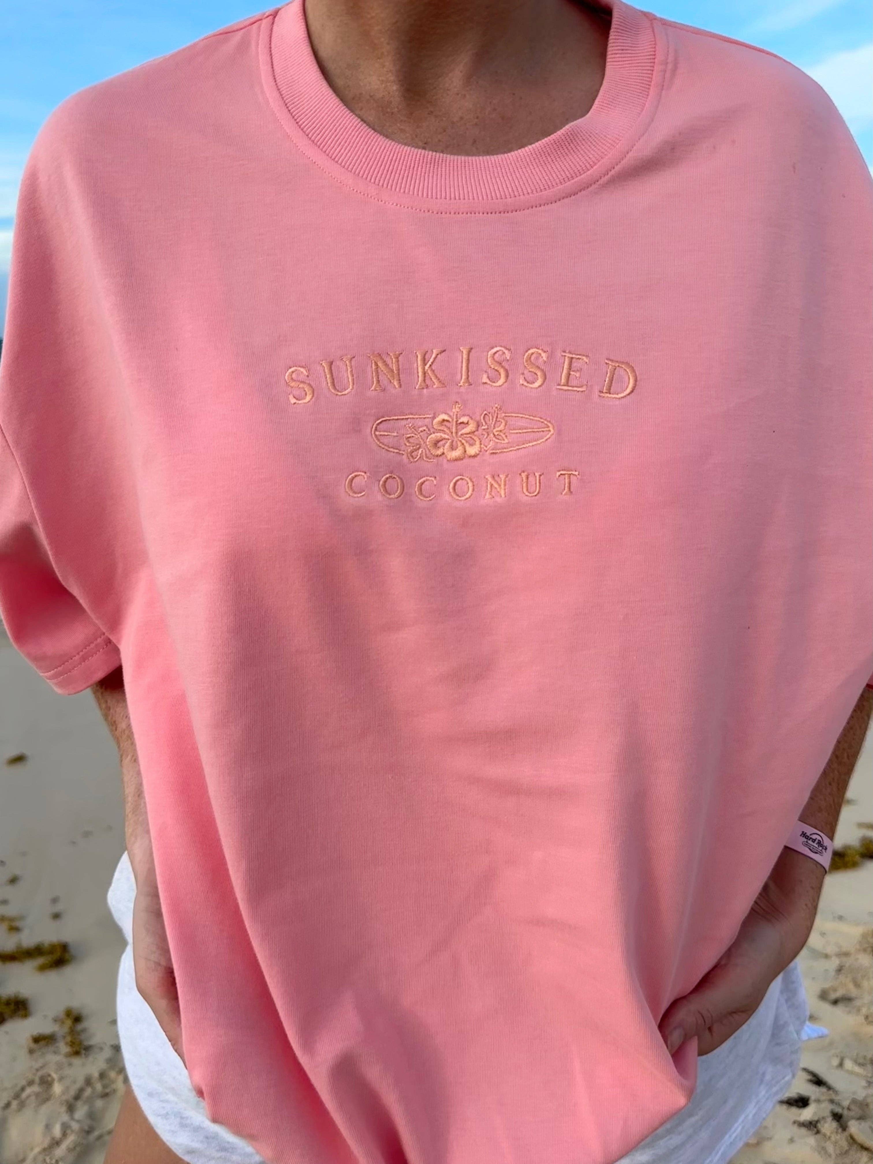 Get ready to hit the waves in style with our "Sunkissed Coconut" Sherbet Surfboard Tee. This t-shirt features playful embroidery on the front and back, with a washed finish for ultimate comfort. Perfect for anyone looking to add some beach vibes to their wardrobe. Hang loose and catch some rays in this must-have tee.